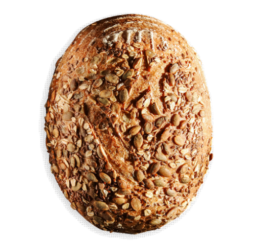 Dieses rustikale Vollkorn-Sauerteigbrot ist reich an Sonnenblumenkernen, Haferflocken und Leinsamen. Es verleiht jeder Scheibe einen kräftigen, vollmundigen Geschmack.