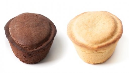 Kleine, gefüllte Mürbeteigtörtchen in 2 Varianten: heller Mürbeteig gefüllt mit Creme mit Vanillegeschmack, dunkler Mürbeteig gefüllt mit Giandujacreme (Haselnusscreme).