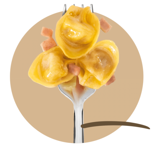 Vorgegarte Eier-Pasta 53% (Eier-Pasta 80% (HARTWEIZENGRIESS, EIER 12,5%, Mortadella (Schweinefleisch, Meersalz, Gewürze, Gewürzpflanzen, Antioxidant: Natriumascorbat, Ascorbinsäure, Konservierungsmittel: Natriumnitrit), Parmigiano Reggiano DOP Käse (MILCH, Salz, Lab), Schweinefleisch, Wasser, Paniermehl (WEICHWEIZENMEHL Typ "0", Wasser, Salz, Bierhefe),