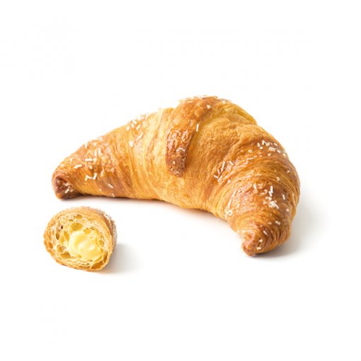 WEIZENMEHL, Margarine (pflanzliches Palmfett, Wasser, pflanzliches Sonnenblumenöl, Säureregulator: Citronensäure, Natriumcitrat; Salz, Emulgator: Mono- und Diglyceride von Speisefettsäuren), Patisseriercreme (15,5%) (Wasser, gezuckertes EIGELB 15% (EIGELB 50%, Zucker), Zucker, Glucosesirup, Verdickungsmittel: E1442, E1422; VOLLMILCHPULVER, BUTTER, MAGERMILCHPULVER, Stabilisator: E460i, E466; natürliche Aromen, Konservierungsmittel: E202; Salz, natürliches Bourbon-Vanillearoma 0,06%, Farbstoff: E160a)), Wasser, pasteurisierte EIER, Zucker, Hefe, Invertzuckersirup, SOJAMEHL, gemälztes GERSTENMEHL, Salz, WEIZENGLUTEN, natürliche Trockenhefe (WEIZENMEHL), Emulgator: E472e, E471; Pflanzenfasern , Trennmittel: E170; Dextrose, natürliche Aromen, WEIZEN- und Maismalz, Stabilisator: E415, Antioxidationsmittel: E300. Garnierung auf der Oberfläche (3,2%): (Zucker, Wasser, Glukosesirup, Reismehl, WEIZENstärke, Stabilisator: E953; Überzugsmittel: E903; Geliermittel: E406; Säureregulator: Citronensäure, Konservierungsstoff: Kaliumsorbat, Aromen).