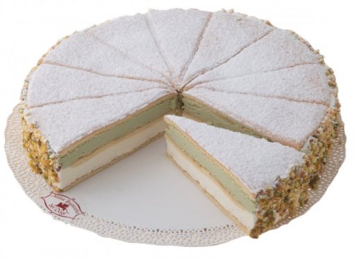 Zucker, Wasser, RICOTTA 12 % (MOLKE, pasteurisierte Vollmilch, MILCHRAHM, Säureregulator: Zitronensäure), teilweise hydrierte Öle und Fette (Sonnenblumen, Palm, Kokos), hydrierte Pflanzenöle (Palm, Palmkern, Sonnenblumen, Soja), Dextrose, PISTAZIEN 5 %, WEIZENMEHL, EI, Glukosesirup, HASELNÜSSE, modifizierte Stärke, pflanzliches Fett (Kokosnuss, Sonnenblume), LAKTOSE, Vollmilchpulver, Emulgatoren (E471, Sonnenblumenlecithin, E472b, E472a, E472e, SOJALECITHIN), MAGERMILCHPULVER, SÜSSMOLKENPULVER, MILCHPROTEINE, Stabilisatoren (Carrageen, Calciumacetat, Diphosphate, Natriumphosphate, Calciumphosphat, Trinatriumdiphosphat, Calciumsulfat, Sorbitol-Sirup), Verdickungsmittel (Calciumalginat, Hydroxypropylcellulose), Farbstoffe (Annatto, Carotine, Riboflavin, Curcumin, Calciumcarbonat, Karamell, E141ii), Salz, Aromastoffe, Backtriebmittel (Dinatriumdiphosphat, Natriumcarbonat), natürlicher Vanilleextrakt.